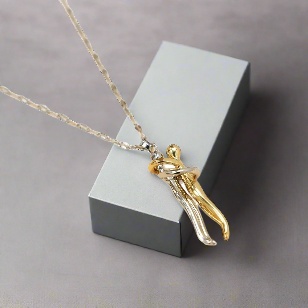 Este collar con diseño de abrazo representa la unión, el cariño y los momentos que no se olvidan. Dos figuras entrelazadas simbolizan un amor incondicional y un lazo imposible de romper.